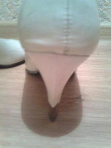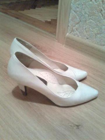 Balti bateliai, odiniai, labai geri, padarytas patogus padas su paminkstinimais, 35 ar 35.5 dydzio. Kulniukas aptrauktas, apacioje padailintas metaliniu elementu.