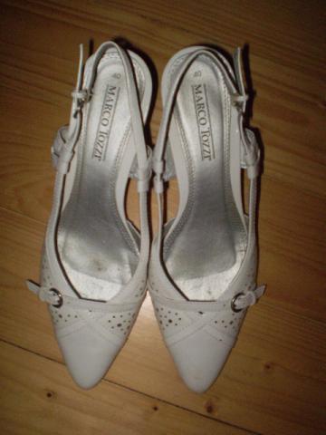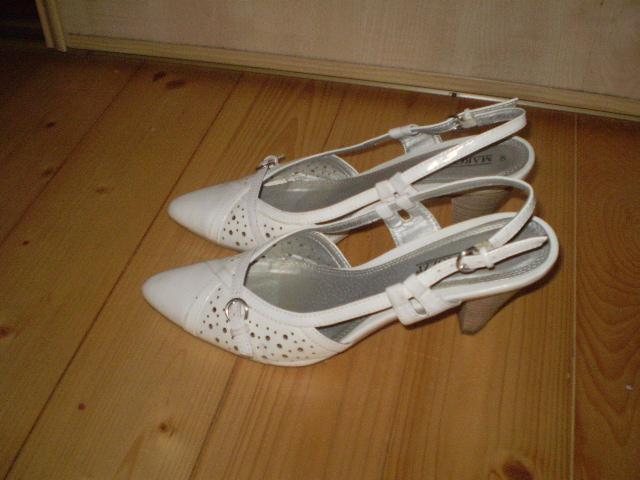 Balti vasariniai bateliai atvira pakulne. Avėti tik vieną kartą, nenunešioti. Kulniuko aukštis apie 6-7cm. Parduočiau už 20Lt.