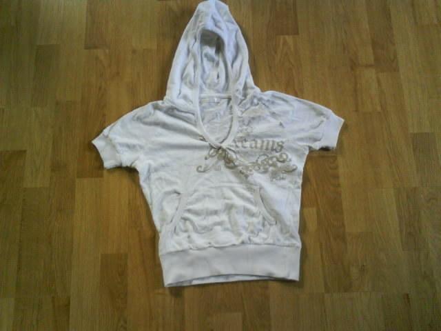Balti bridžai, maždaug ties keliais yra maža kišenėlė, prie kurios yra nenusitrynęs aukso spalvos paveiksliukas. Viršuj parašiau XS - S, bet manau, kad gali tikti ir M. Mainausi TIK Vilniuje.