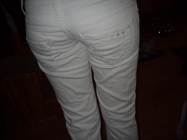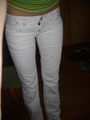 grazus xs/s dydzio balti dzinai. atrodo grynai nauji, vienintelis defektas apacioje patrinti (matosi foto) bet galima patrumpinti ir bus vsiai nauji kaip :) f kaina pardavimui 25lt