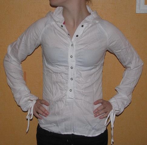 Balti marškinukai su kapišonu. Atsiprašau, kad šiek tiek pasiglamžę:) Dydis S-XS. Effigy.