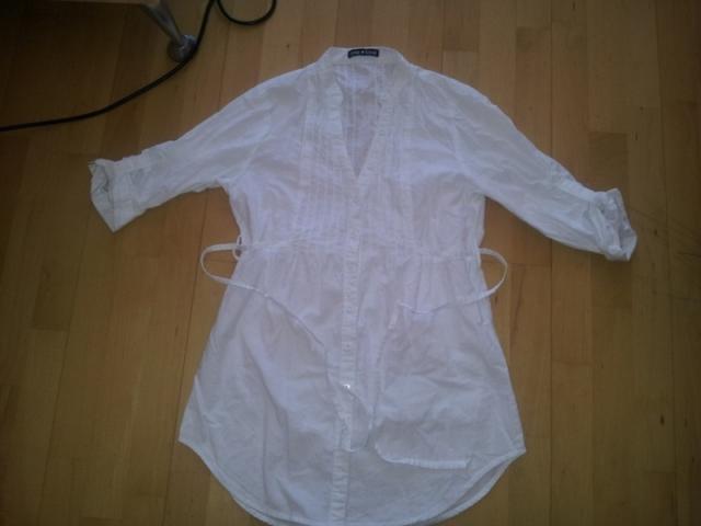 Gražūs balti marškinukai. Mažai dėvėti. Susegami ir surišami dirželiu nugaroje. Be defektų. 3/4 rankovės bet galima padaryti ir ilgas,