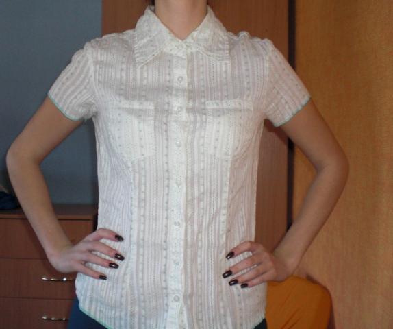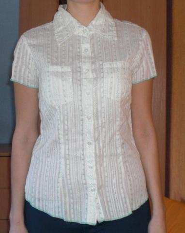Balti marškinukai trumpomis rankovėmis su mažomis žaliomis gėlytėmis :) Dydis 36, tačiau tinka ir toms ,kurios nešioja 38. Jei domina išmatavimai - rašykit.