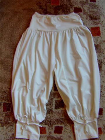 Labai gražios baltos aladino kelnytės :) Buklė labai gera. Dydis universalus, tiks ir S / M, ir L dydį nešiojančiai. Kelnytės šiek tiek paaukštintu liemeniu. Apačioje susiriša :)
