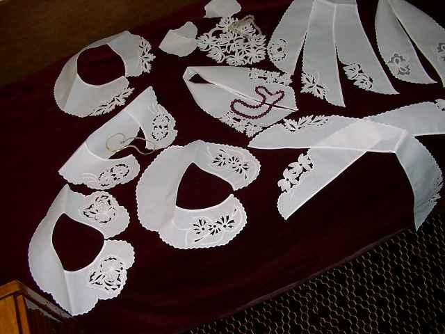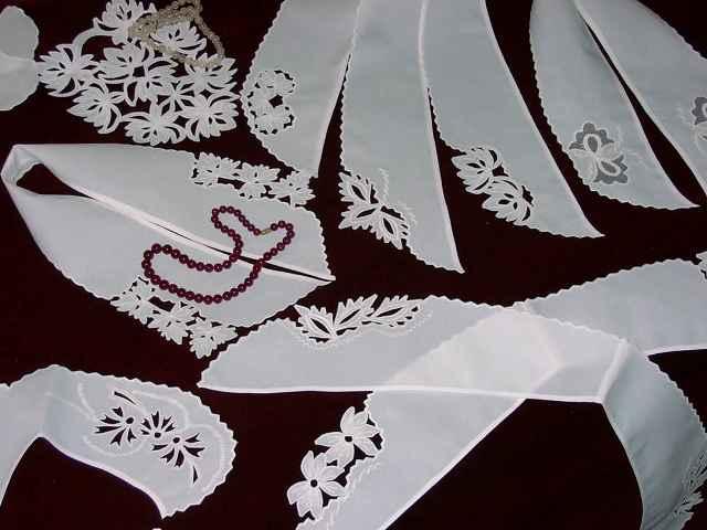 Balto šilko, siuvinėti, uždedami papuošimai bet kokiam drabužiui. Madingas retro stiliukas. Rankų darbas.