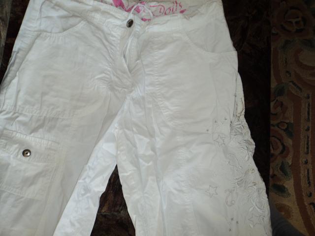 Išmeros nėra, bet jei sudomino atsiusiu išmatavimus. Vasarinės baltos kelnės , ant šono vieno šono yra raštukas, susiraukia galai, arba nea :)