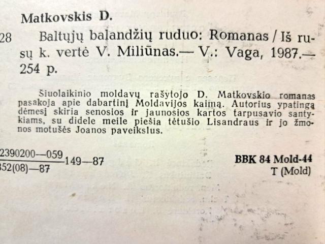 1987m. 254 psl. Dumitrus Matkovskis. knyga mažo formato