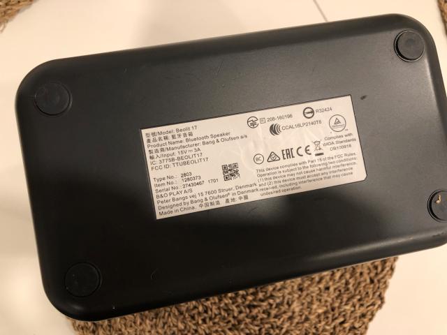 B&O Beolit 17 Bluetooth kolonele. Puikiai skambanti, didelis ir aiskus garsas. 360 laipsniu skambejimas, tai nesvarbu kur pastatysite. Krovimas usb-c laidu. Idetas naujas akumuliatorius, klausant garsu per viduriuka, akumuliatorius laiko 12val 50min iki visisko issikrovimo. Kartu pridedu 45w usb multi ikrovikli.