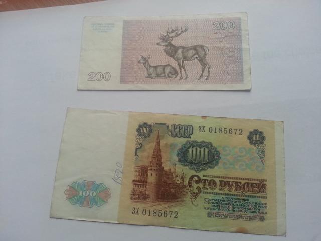 1991 m. 100 rublių kupiura 1993 m. 200 talonų kupiura