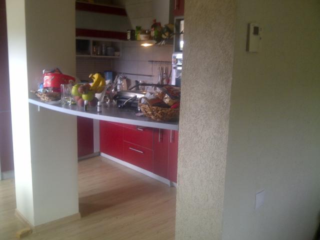 Numontuotas baras - medziaga kaip stalvirsio. Islenkta forma, matmenys mazdaug 1,4m - 0,5m. Galima kazkur kabinti, arba pritvirtinus kojas pagaminti kokybiska stala.