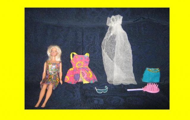 rinkinyje- 1 barbe,jos vestuvinis nuometas , jos sukos...