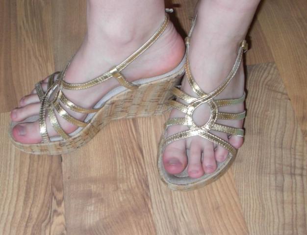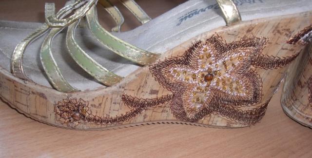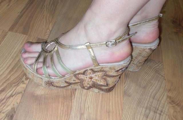 Labai fainos vasarines basutes ;) raso 36 tinka ir 37 mazam :) spalva auksine, platforma dekoruota matosi foto ;) jokiu dideliu defektu nera, kiek pasitryne dirzelei uzsegimo vietoje ;)