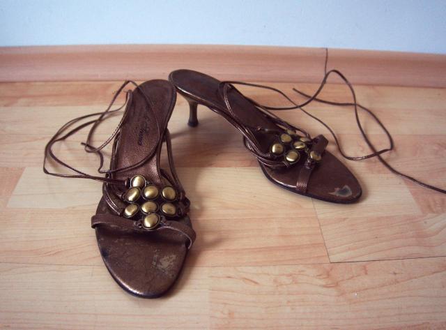 Dailios atviros basutės ant vidutinio labai patogaus kulniuko. Gali būti surišamos keliais būdais [parodyta nuotraukoje]. Vidpadis šiek tiek pasitrynęs vietomis, bet kai apsiauni, patrynimai pasislepia.