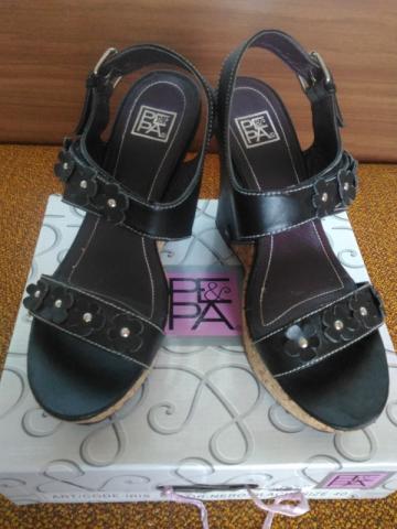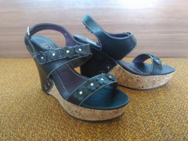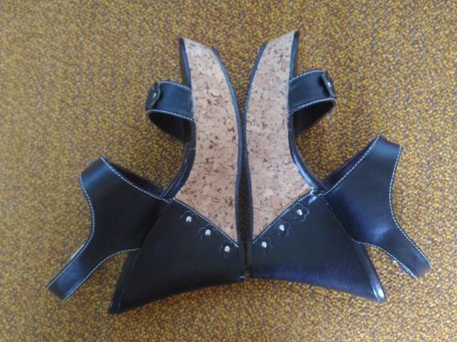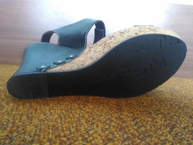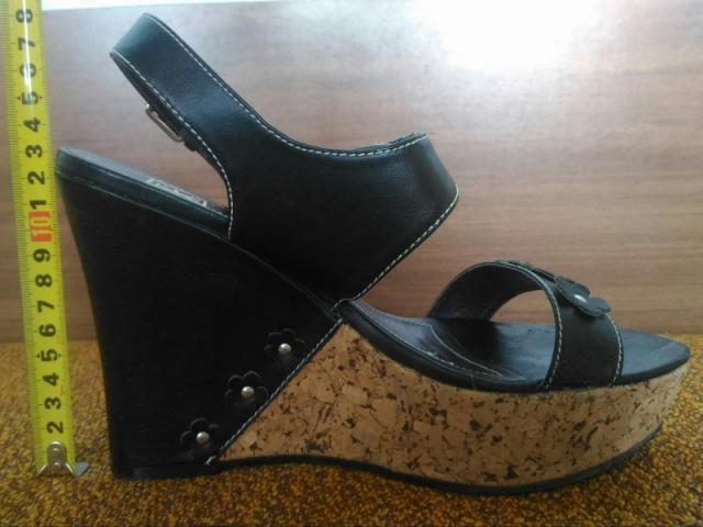 Ispaniškos (pirktos LT) basutės-žudikės su 13 cm pakulne (kartu su platforma). Juodos. 40 dydis. Vidus - oda, išorė - dirbtinė oda. Platforma aptraukta natūralia kamštine medžiaga. Labai mažai nešiotos (matosi iš padų), kadangi buvo atsiklijavę šonai, neštos į garantinį paklijavimui (žr. foto), po to nenešiotos. Su originalia dėžute. Puikiai tiks turinčioms aukštą vyruką parankėje arba norinčioms tokį susirasti :)