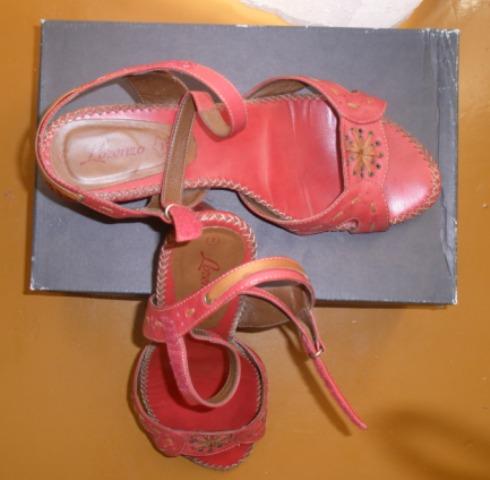 Raudonos spalvos, minkštos odos, labai patogios Lorenzo basutės. Mažai dėvėtos, pirktos parduotuvėje "Danija". Dydis 41. Kulno aukštis 5,5 cm.