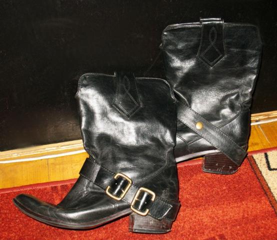 Aš nešiojau nedaug, tačiau pirkau padėvėtų drabužių parduotuvėj. pačių būklė ir išvaizda tikrai gera, tik žinoma, reik pavaksuot, nes nuo praeito rudens netvarkyti. Dirželiai tik dėl grožio, jie nusiima. Kulnai šiek tiek padrožti, daugiausia nuo tų dirželių, kurie guli tiesiai ant kulnų. taip pat galit norėt juos pasikalt. Nepavyko gerai nufotografuot, kaip atrodo kulnai, nes blykstė viską per daug išryškina, tačiau jų nubraižymų už dirželių beveik nesimato.