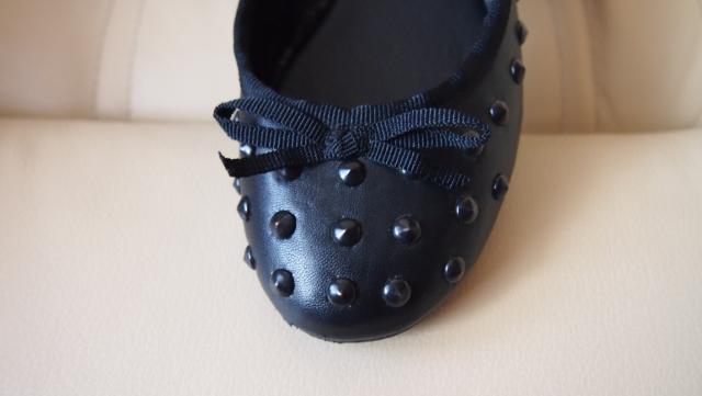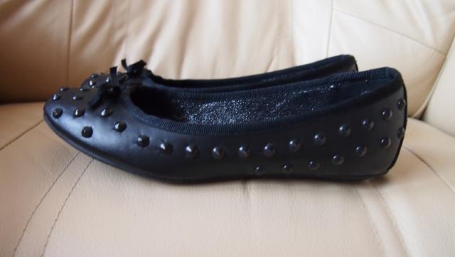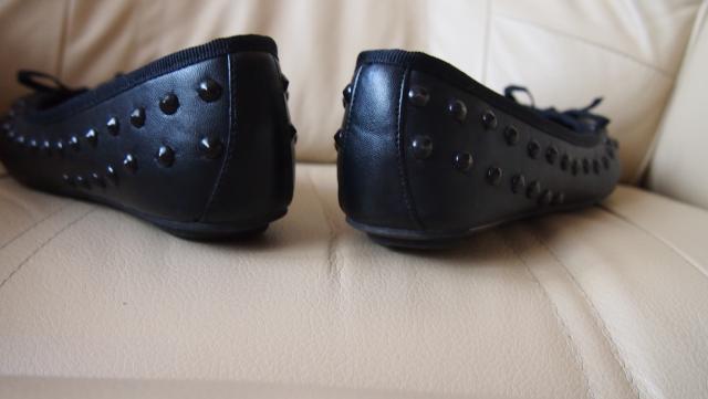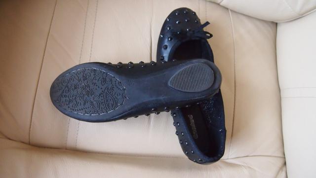 Labai gražūs, stilingi 36 dydžio bateliai- balerinos mergaitei. Juodi, su metaliniais "spygliukais". Labai gerai išlaikyti, vos kelis kartus avėti. Labai greitai dukra išaugo. Vidpadis- 23 cm.