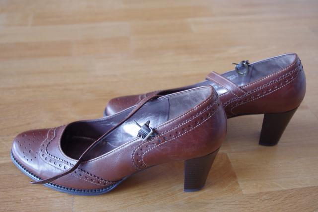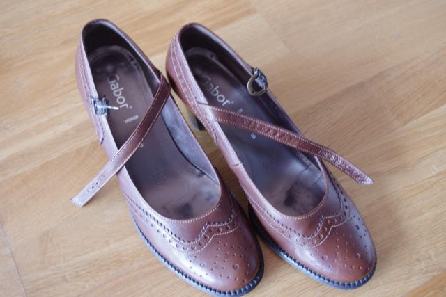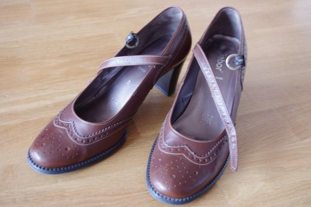 Odiniai Gabor bateliai su užsegimu per keltį. Spalva: ruda