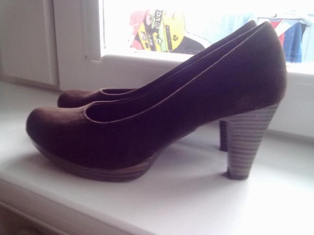 zomšinis pakaitalas, ruda spalva, pavasariniai- rudeniniai, avėti keletą kartų, man jie per maži, todėl ir atsirado šiame portale:] , batelių platforma nedidele ir kulnas tarsi mediniai atrodo, kasdienai puikiai tinkantys bateliai:]