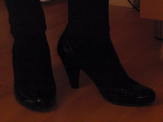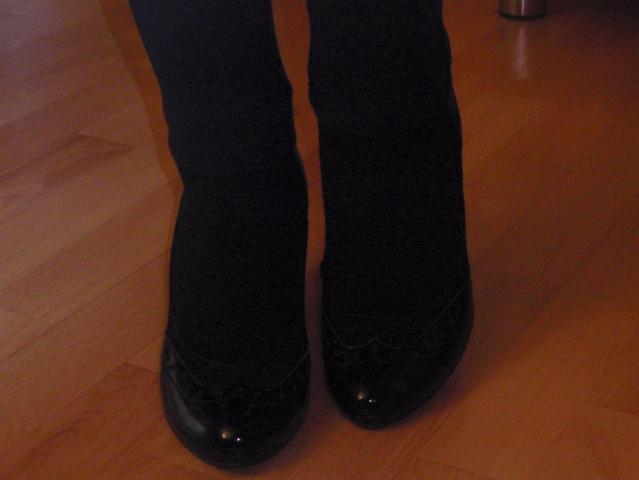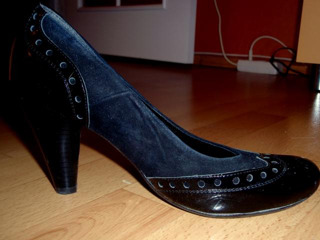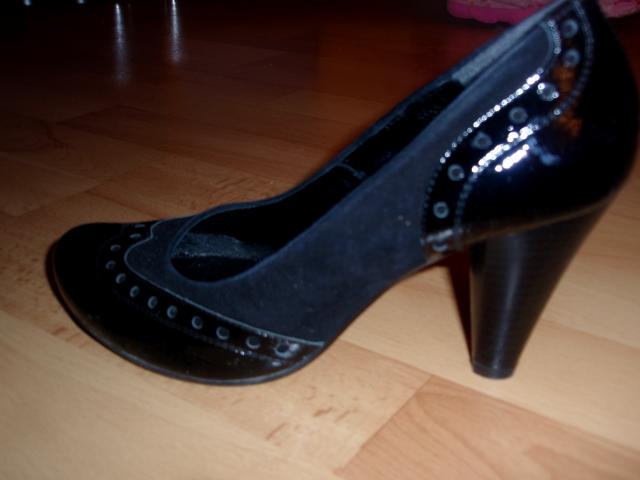 Gražūs, juodi žomšiniai batai. Vietomis lakuoti.