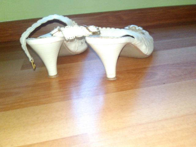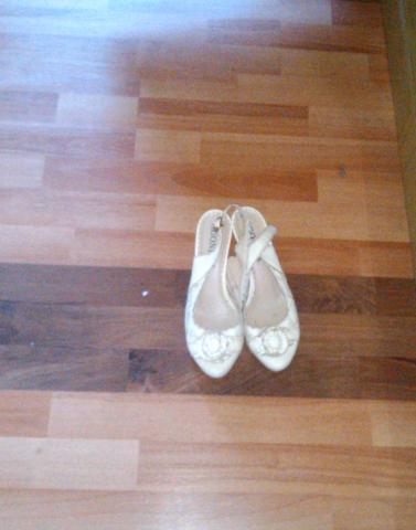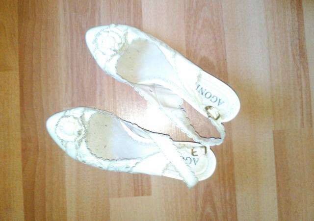 Nauji bateliai, pirkti išleistuvėms, tačiau taip ir neteko niekur išeiti. Priekis uždaras, gėlių ornamentai, kulnas atviras. Pirkti Palangoje iš parduotuvės "Urpėja".
