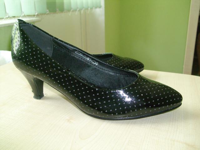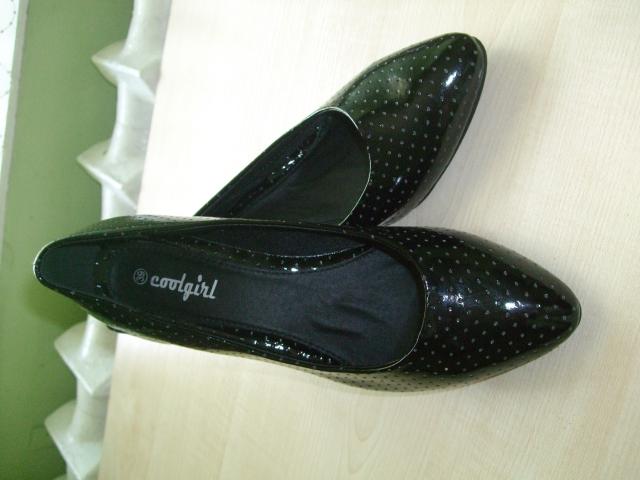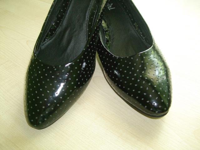bateliai, neaukštu kulniuku, p.s. ant vieno kulnelio yra broko, matosi nuotraukose