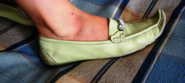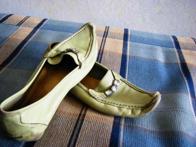 Labai patogūs, grynos odos, žali batukai su dirbtiniais briliantais (vienas iškritęs, bet nekrenta į akis).40-41d.