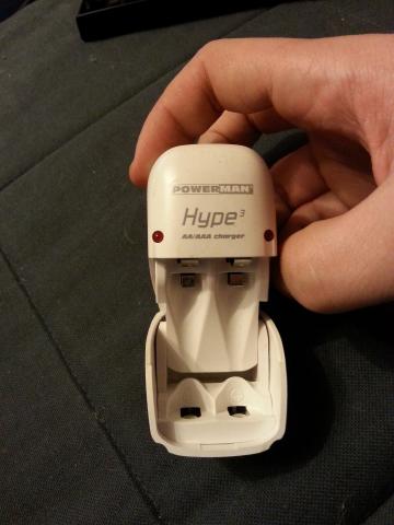 AA/AAA tipo baterijų pakrovėjas, beveik nenaudotas.
