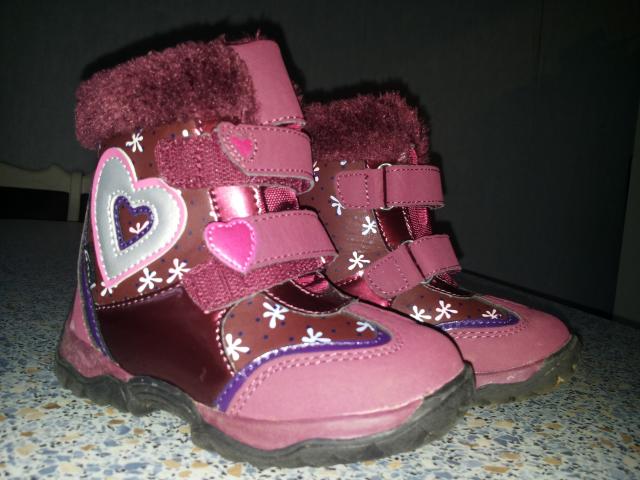 Beveik nauji, mažai nešioti. Patogus lipdukinis užsegimas. Pašiltintas vidus. Spalva - violetinė. Dydis - 23 (6).