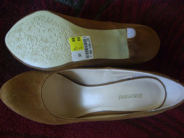 Parduodu naujus, visiškai nenešiotus batelius. Nusipirkau, atrodė viskas gerai, tiko 37 dydis, nors šiaip nešioju 38, tačiau namuose pasimatavusi supratau, kad ilgai neišbūčiau dėvėdama juos, o labai gaila, kadangi man jie tikrai labai patiko. Kulniuko aukštis apie 6 cm, labai patogūs ir tikrai labai gražiai žiūrisi ant kojytės. Pirkau batukus už 69 Lt, atiduodu už 50 Lt. Spalva - ruda.