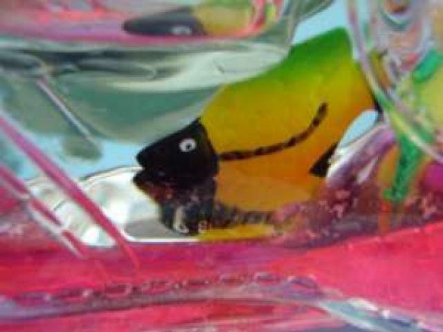 Gražus batukas su rožiniu vandeniu ir žuvytėmis jame :] Skirtas suspausti popieriui ir laikyti rašikliams, bet gali būt panaudotas ir kaip dekoracija.