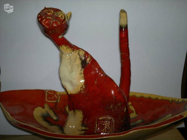 Batuotas katinas, 2 daliu skulpturele + vaza.