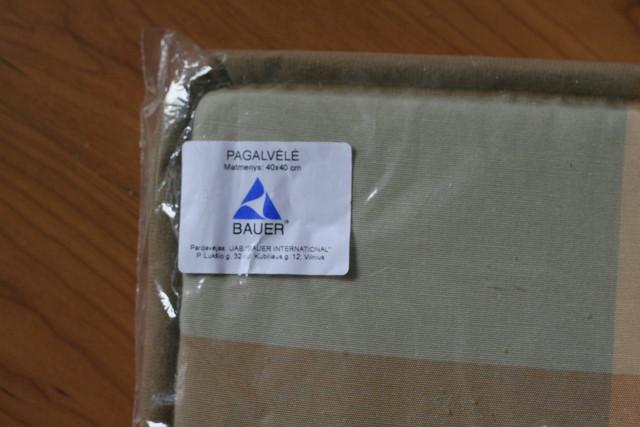 nauja, neišpakuota. Plona kailinė pagalvėlė. Kaip suprantu gali būti naudojama padsidėti ant kėdės po užpakaliu :) ar mašinoje. Yra tokio pat dydžio ir stora pagalvėlė, bet ji išpakuota, tačiau nenaudota. Matosi paskutinėje nuotraukoje