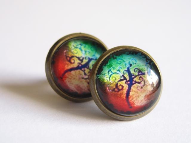 Auskariukai padaryti naudojant Collagen'o techniką. Auskariukų piešinėlis - tai paveikslėlis perkeltas ant fotopopieriaus ir uždengtas permatomu kabošonu. Auskariukų užsegimas sendinto žalvario spalvos.
