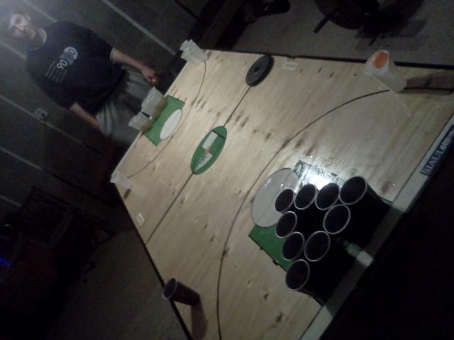 Beer pongo stalas, darytas mano paties, (zalgirio) .... Tik stalvirsis be koju, kury galima padeti ant betkokio stalo... susilianke per viduri kaip knyga,... labai stengiausi darydamas:)