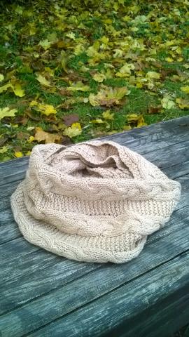 Naujas, rankomis megztas apvalus šalikas. Siūlai pusvilnė. Ilgis ~120 cm, susiūtas ratu. Spalvos - švelniai violetinė, kakavinė, rudai-žalia, pieno baltumo, vyšninė.