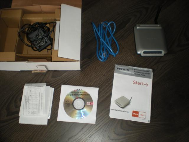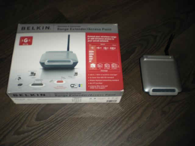 Puikus dalykas vokgti neprirakinta internetą kurio signalas vos gaunamas, arba šiaip pagalbininkas sustiprinti signalą , kad ir prirakinto interneto. Belkin wireless Range extender Access point kaina - 90Lt Pristatant uz Vilniaus ribu 5Lt siuntimas Lietuvos pastu Lengvas naudojimui, tiesog pastatote ties jusu tinklo radiaso riba ir gaunate papildoma tiklo skleistine iki 100m. Nuotraukos: http://www.one.lt/nuotraukos/belkin-range-extender-access-point/2590290282024/ Gamintojas Sis Wireless G Visuotines Ran