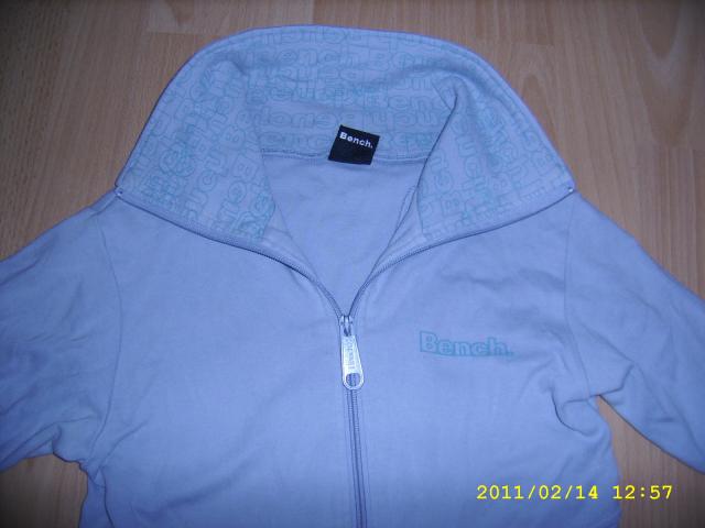 sviesiai zydros spalvos, realiausia spalva 1 foto. nugaroje per sona didelemis raidemis uzrasyta Bench