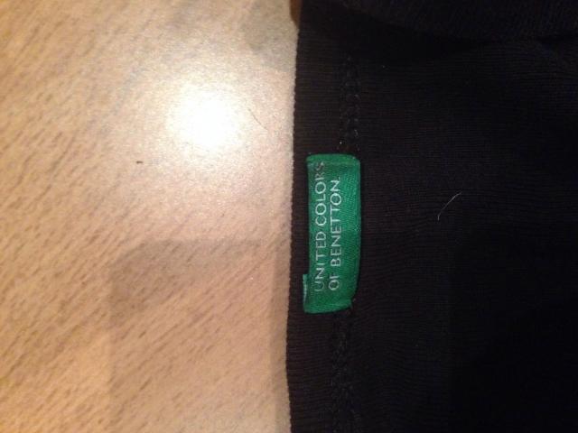 Benetton juoda maikute labai grazi su blizganciu uzrasu yra 1 defektukas ties pazastim truputi pabalteja