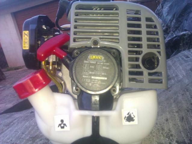 Benzininė žoliapjovė su reguliuojamomis rankenomis. Oru aušinamas 2-taktis variklis. Trimmerioskersmuo: 2 mm. Pjovimo plotis: 360 mm. Bako talpa: 0,6 litro variklis: 25,4 cc. Galia: 800 W Svoris: 7 kg. Ilgis: 1,5 m Daiktas praktiskai naujas, tik isbandytas kaip veikia, siulau nes turiu kita zoliapjove.