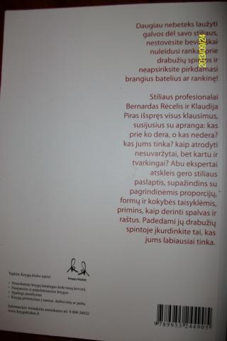 Stiliaus vadovas moterims Daugiau nebeteks laužyti galvos dėl savo stiliaus, nestovėsite beviltiškai nuleidusi rankas prie drabužių spintos ir neapsiriksite pirkdamasi brangius batelius ar rankinę! Stiliaus profesionalai Bernardas Rėcelis ir Klaudija Piras išspręs visus klausimus, susijusius su apranga: kas prie ko dera, o kas nedera? Kas jums tinka? Kaip atrodyti nesuvaržytai, bet kartu ir tvarkingai? Abu ekspertai atskleis gero stiliaus paslaptis, supažindins su pagrindinėmis proporcijų, formų ir kokybė