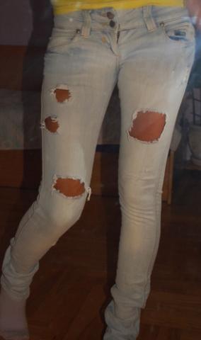 XXS. Visur kur buvo patrynimai, dabar iplyso. Megztancioms patrintus, skyletus dzinsus, tikrai dar tinkami nesiojimui, gal siaip susigalvosit ka idomaus pasidaryti. Defektukai didziausi- jau itruko ir ties uzpakaliu, bei pacioje apacioje dzinsu.