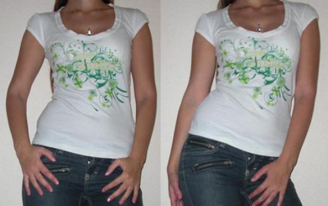 labai grazi,baltos spalvos ;) priekyje piesinelis zalsvas ir uzrasas one smile ;) iskirptele labai grazei atrodo, tiesiog super :]