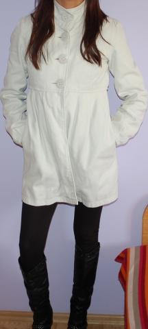 Dydis M, bet labiau S sakyčiau. Išmatavimai nuotraukoje. Galim susitikt ir pasimatuot :) Labai grazus ir patogus, bet man jau mažas :( Spalva ne balta, labiau pilkšvai balta = ne taip suodinasi kaip balta