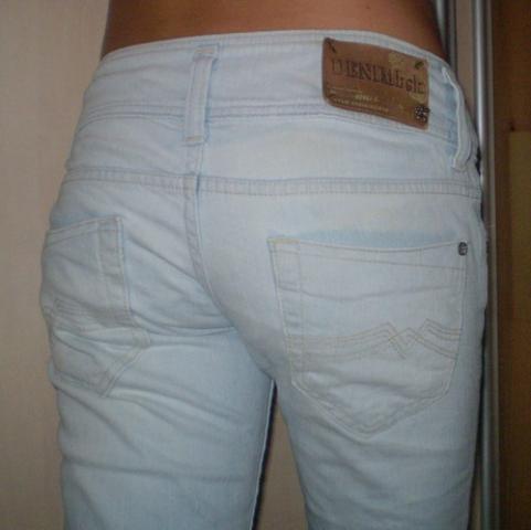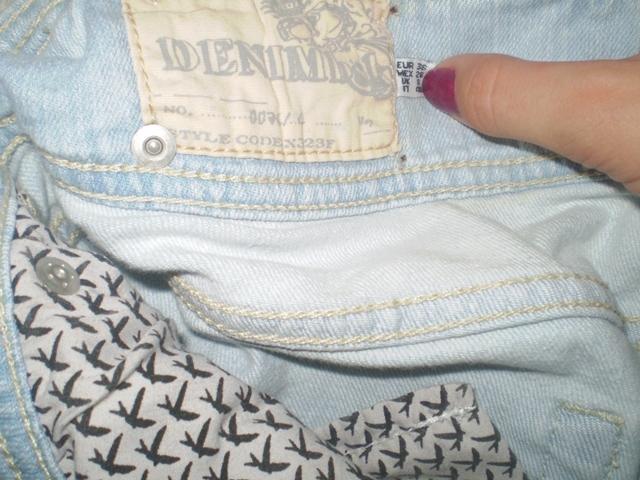 Praktiškai nedėvėti, bet per pirmą skalbimą apturėjo avariją - du šviesesni taškeliai. Nelabai matosi, bet, jeigu labai trukdo, galima ten paplėšyti ir dar kurią nors džinsų dalį. Tuomet turėtumėt madingus plėšytus džinsus :)