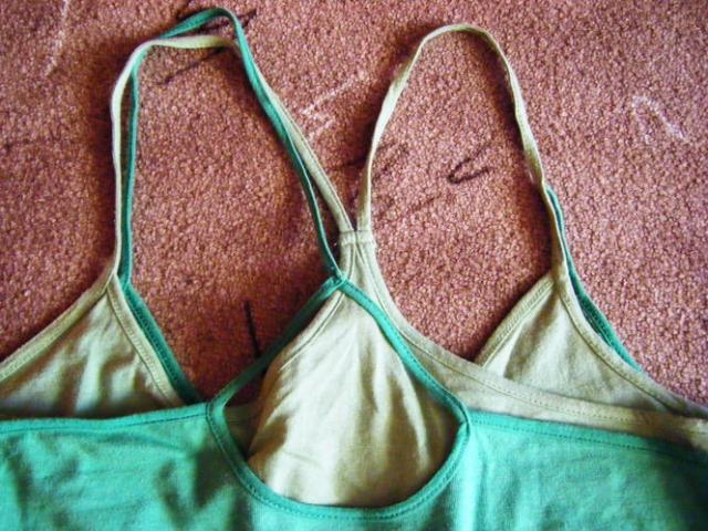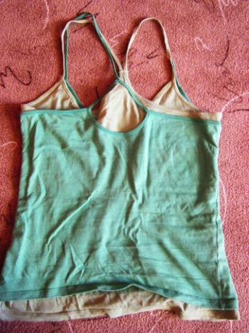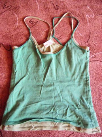 M dydžio, bet į mažesnę pusę, labai mažai nešiota.Dviejų maikučių imitacija.Defektas : katinas nukando vieną šleikutę (matosi paskutinėj nuotraukoj), bet šiaip nekrenta į akis visai, o nešiojimui tai nesudaro problemų.