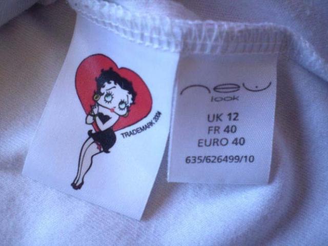 Dydis parašytas, kad 40, bet tikrai ne. Tiktų s-m. Nugaroj nėra piešinukų, balta. Be defektų.