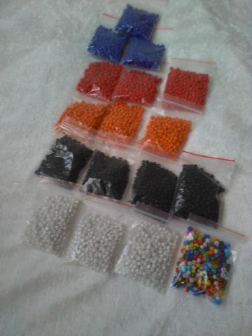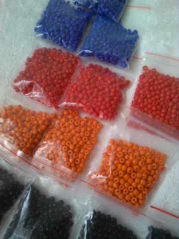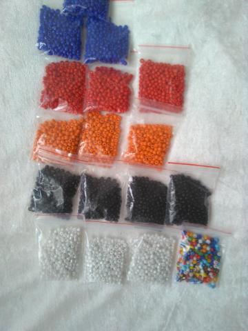 Isparduodu!!! Biserio karoliukai ivairiu spalvu 4mm,parduodu pigiau ,nei parduotuveje-3pakuotes oranzine,3-raudona sp, 3-melyna, 4-juoda,3-balta,1-ivairiu spalvu.Viso svoris-348gr. Del issamesnes info-klauskite :)