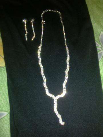 viena karta segetas rinkinukas,auskariukai ir kolje. labai graziai atrodo,,graziai blizga.