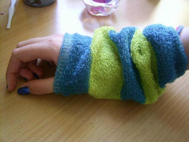 Beveik nenaudotos. Žalia-mėlyna spalvų. Žiemą šilta pasidaryt iš jų kumštukus :)